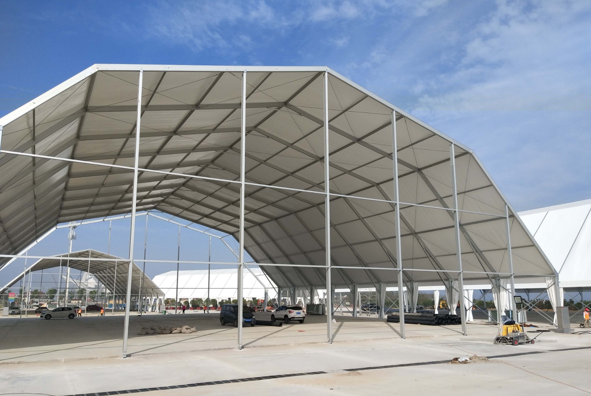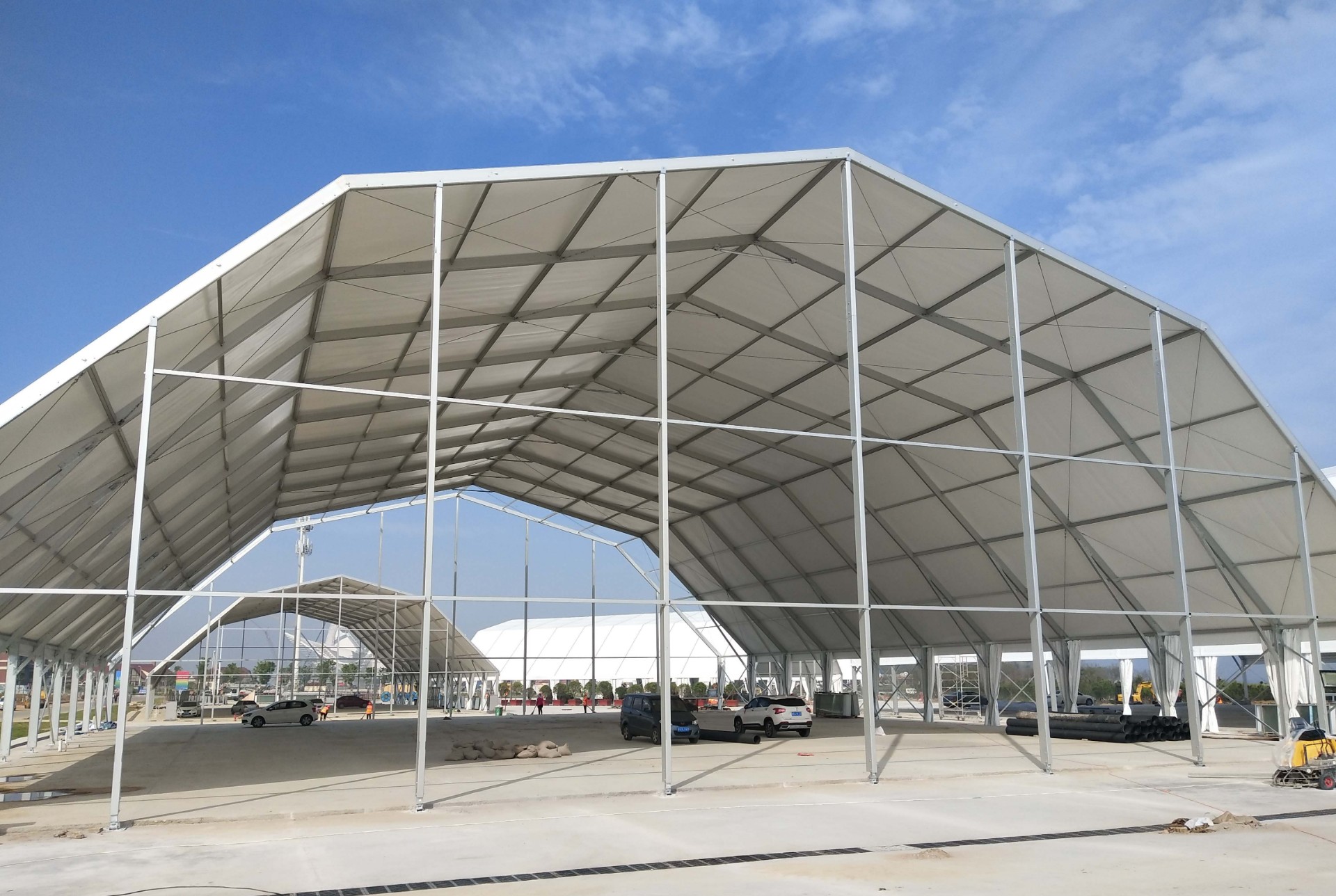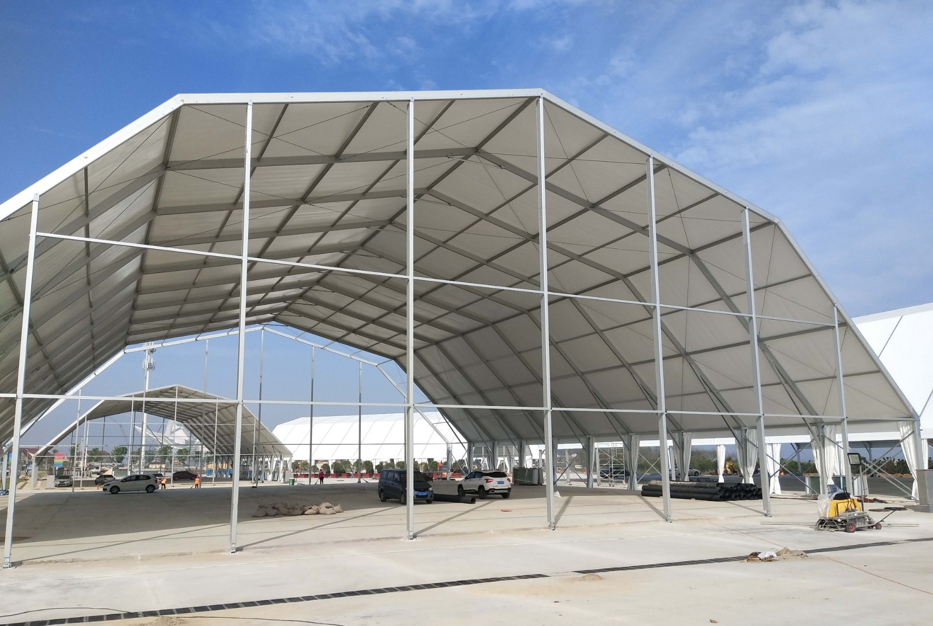 多拱形篷房是由經(jīng)典的人字形篷房演變而來,其中主要的變化就是端面從常規(guī)的三角形變成多拱形,外形大氣美觀,是一款新型的歐式篷房風(fēng)格設(shè)計(jì)。