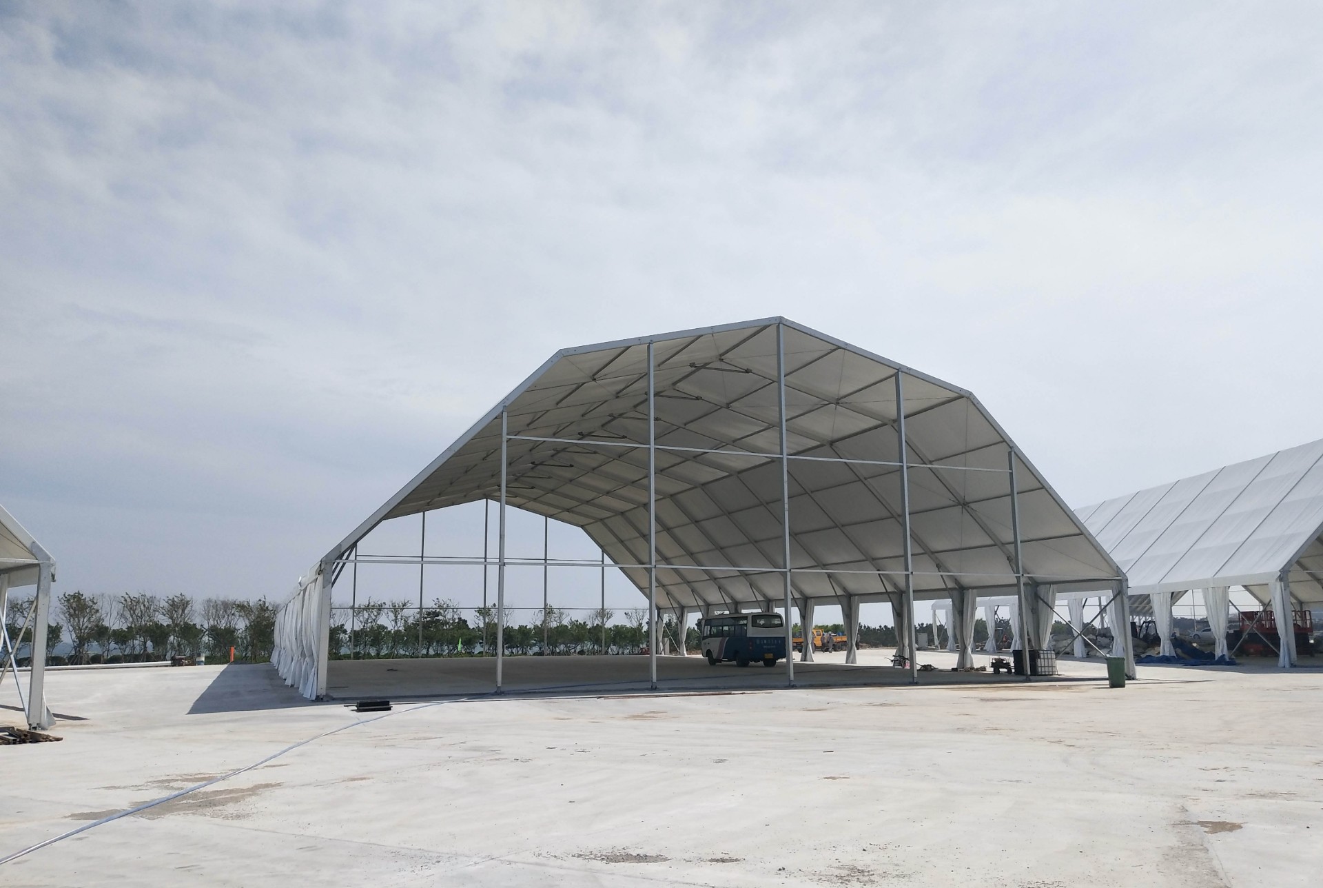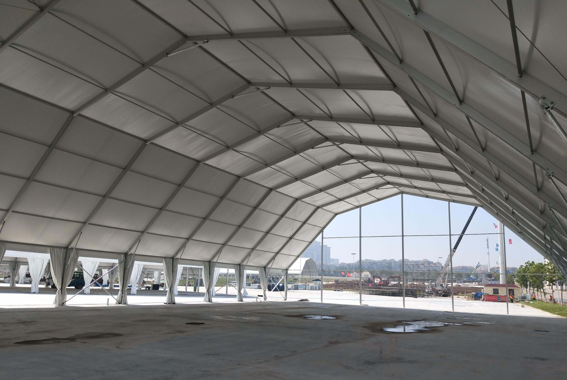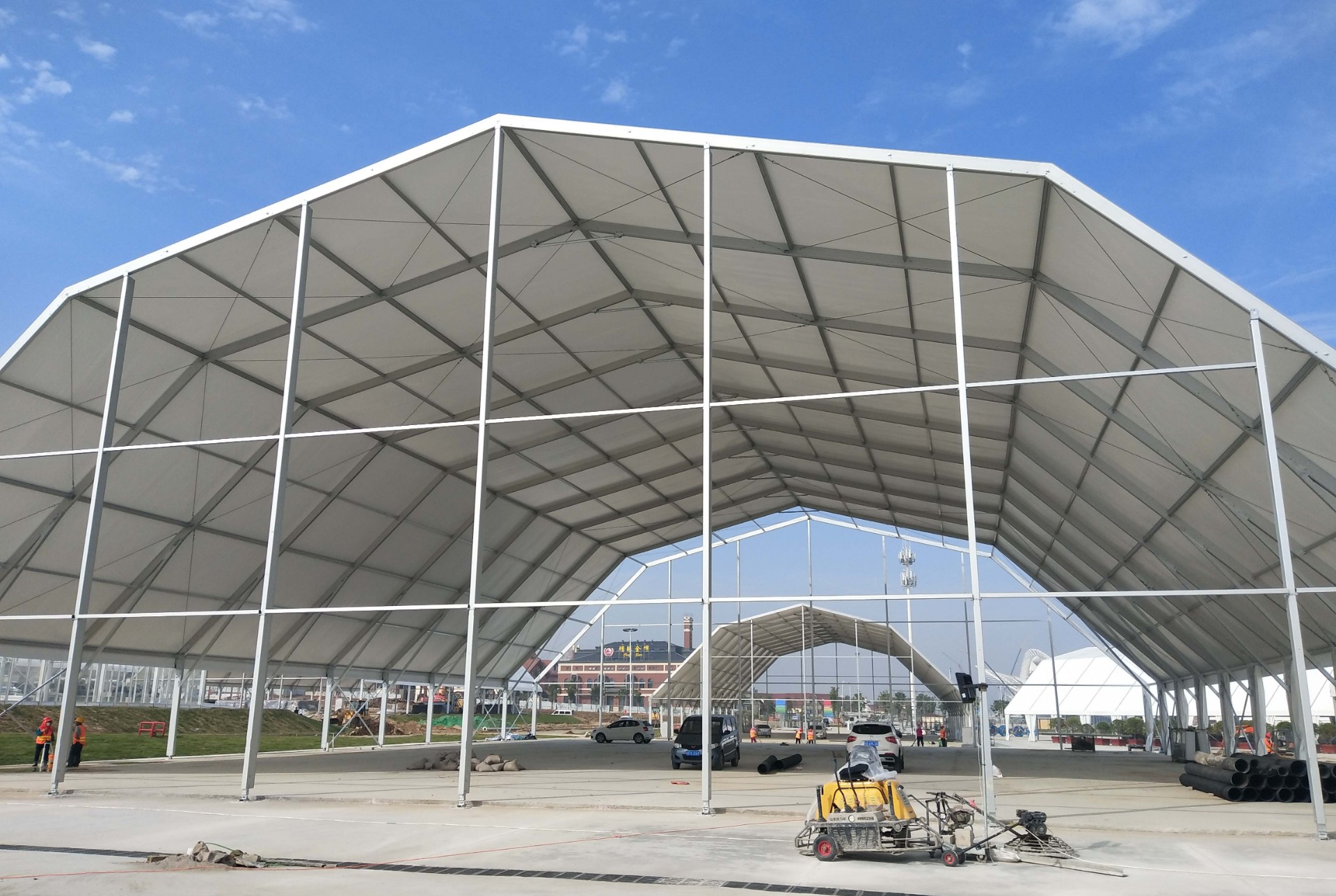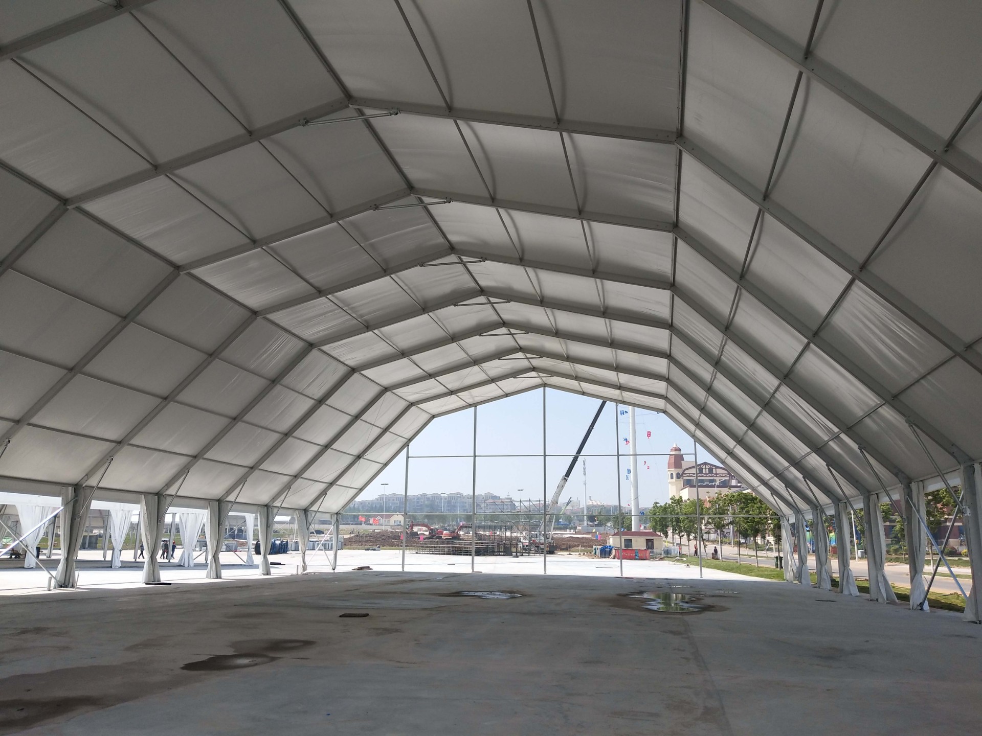多拱形篷房是由經(jīng)典的人字形篷房演變而來,其中主要的變化就是端面從常規(guī)的三角形變成多拱形,外形大氣美觀,是一款新型的歐式篷房風(fēng)格設(shè)計(jì)。