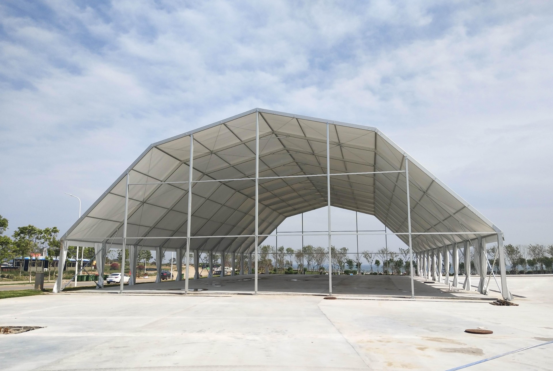 0隨著運(yùn)動(dòng)熱潮的興起,體育篷房給精彩賽事提供強(qiáng)大后盾,如四年一度的世界杯、歐洲杯足球賽、各種高爾夫、賽馬等賽事,無處不見體育篷房的影子。篷房體育場館由于是采用鋁合金框架,并且表面經(jīng)過特殊處理,所以正常在戶外可抗8-10級(jí)大風(fēng)并且遮陽擋雨,搭建完成后基本不需要去維護(hù)??缍葟?米-50米,長度按3米或者5米增加或減少,可以滿足不同場館的需求,我們也會(huì)根據(jù)客戶的需求去量身定制